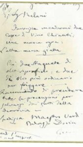 Nel settembre 1896, per placarlo, Giuseppina trasmise all’impresario Camille Du Locle la ricetta alla Verdi, raccomandando soprattutto la misura del Parmigiano Reggiano: “tre buone manate”, l’ultimo tocco caro al Maestro.